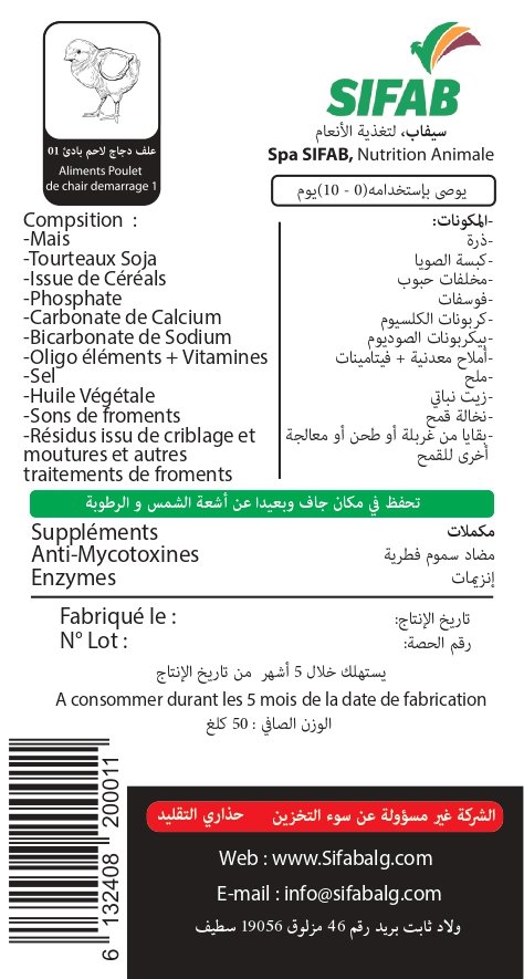 (FR): Aliment bien équilibré des nutriments et des minéraux qui assure les besoin nutritifs des poussins âgé de 0-10 jours, (avec une quantité de 300 g /poussin).